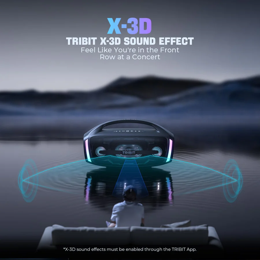 Hiệu ứng âm thanh TRIBIT X-3DBiến bữa tiệc của bạn thành một buổi hòa nhạc ảo hoành tráng với loa tiệc TRIBIT! Với thuật toán X-3D tiên tiến của TRIBIT, bạn sẽ được đắm chìm trong âm thanh sống động, tăng thêm sự phấn khích và niềm vui cho buổi tụ họp, biến mọi khoảnh khắc trở nên thú vị và đáng nhớ hơn!